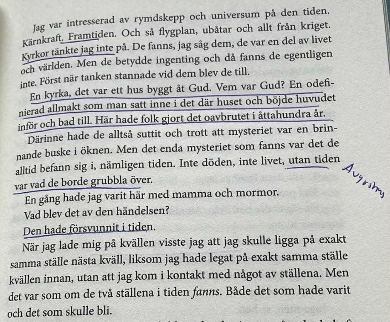 Det var ett spontant DM efter att jag precis börjat läsa, men intuitionen var, visade det sig, riktig. Syvert, bokens huvudperson, brottas med precis de frågorna som sysselsätter Augustinus i den berömda 11:e boken av Bekännelser.